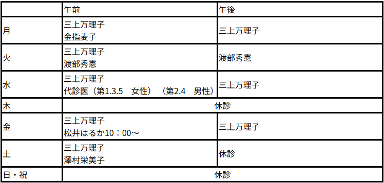 2025年10月より下記表の通り担当医師を変更させていただきます。